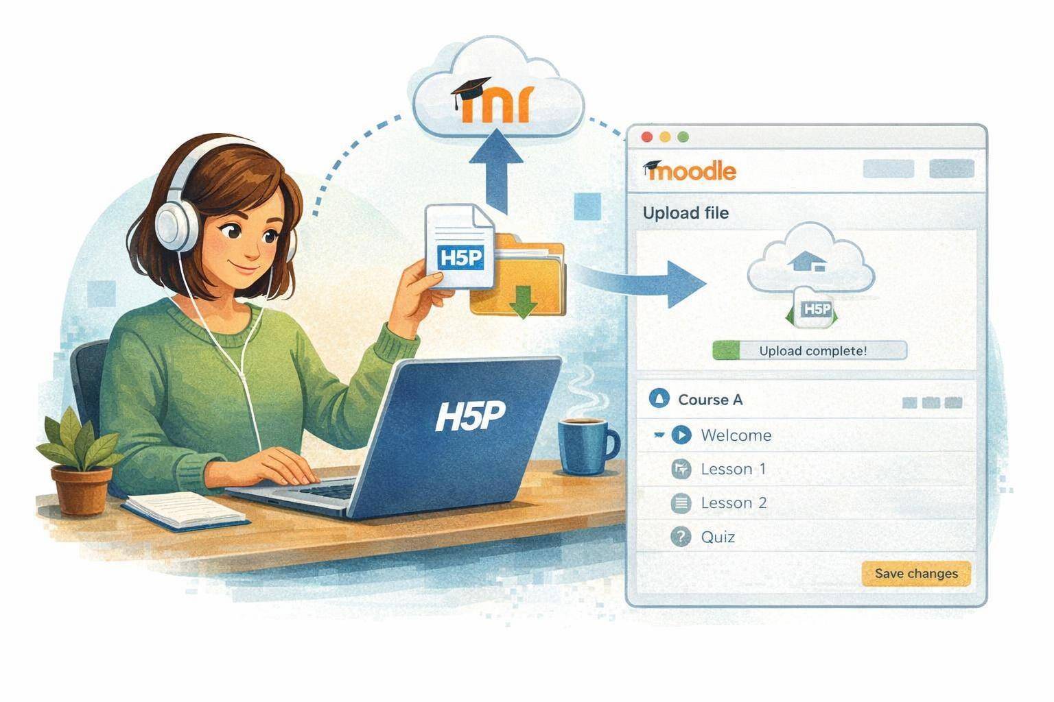 3. Sisältöpankissa valitse Lataa ja lataa/raahaa koneeltasi H5P-tiedosto.